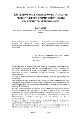 prédictive dans la gestion des collectivités public management of local governments.