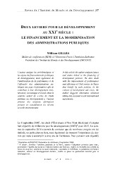 DEUX LEVIERS POUR LE DÉVELOPPEMENT