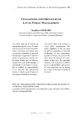 Keywords: Public management, Local authorities, Logic of results, Decentraliza-